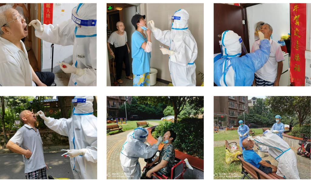 此次核酸检测时间紧、任务重、压力大、负荷高,又恰逢炎热酷暑天气,医务人员在30多度的高温天气下,穿着密不透风的防护服,戴着防护帽、护目镜、防护面屏、口罩、手套,几分钟便汗如雨下。三天的奋战,万人的检测,数名医务人员因体力不支中暑倒地,但他们没有任何怨言,短暂休息后又再次请缨投入工作。