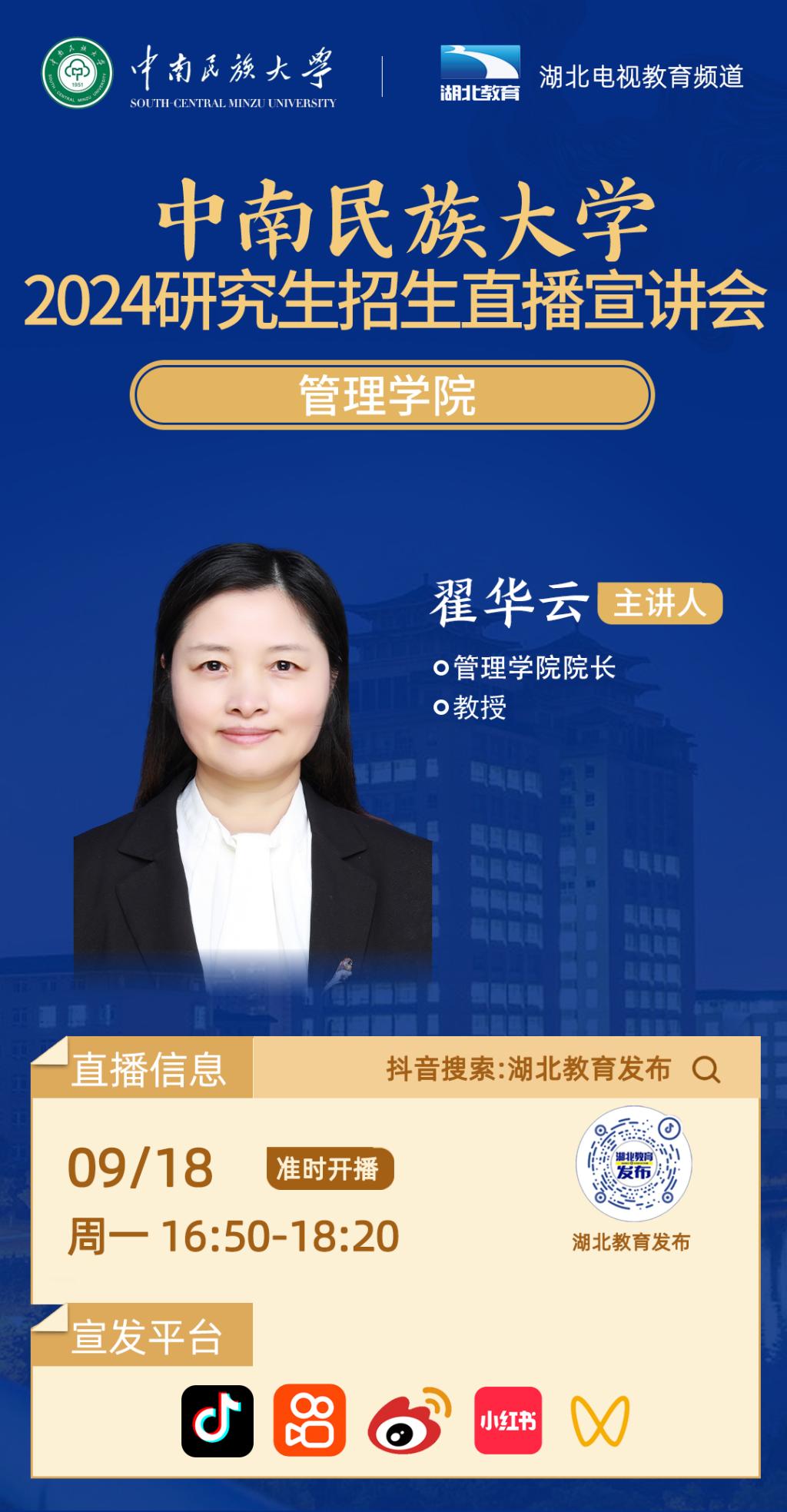 威尼斯8866992024年研究生招生线上系列宣讲会之五------管理学院专场(9月18日 16:50)