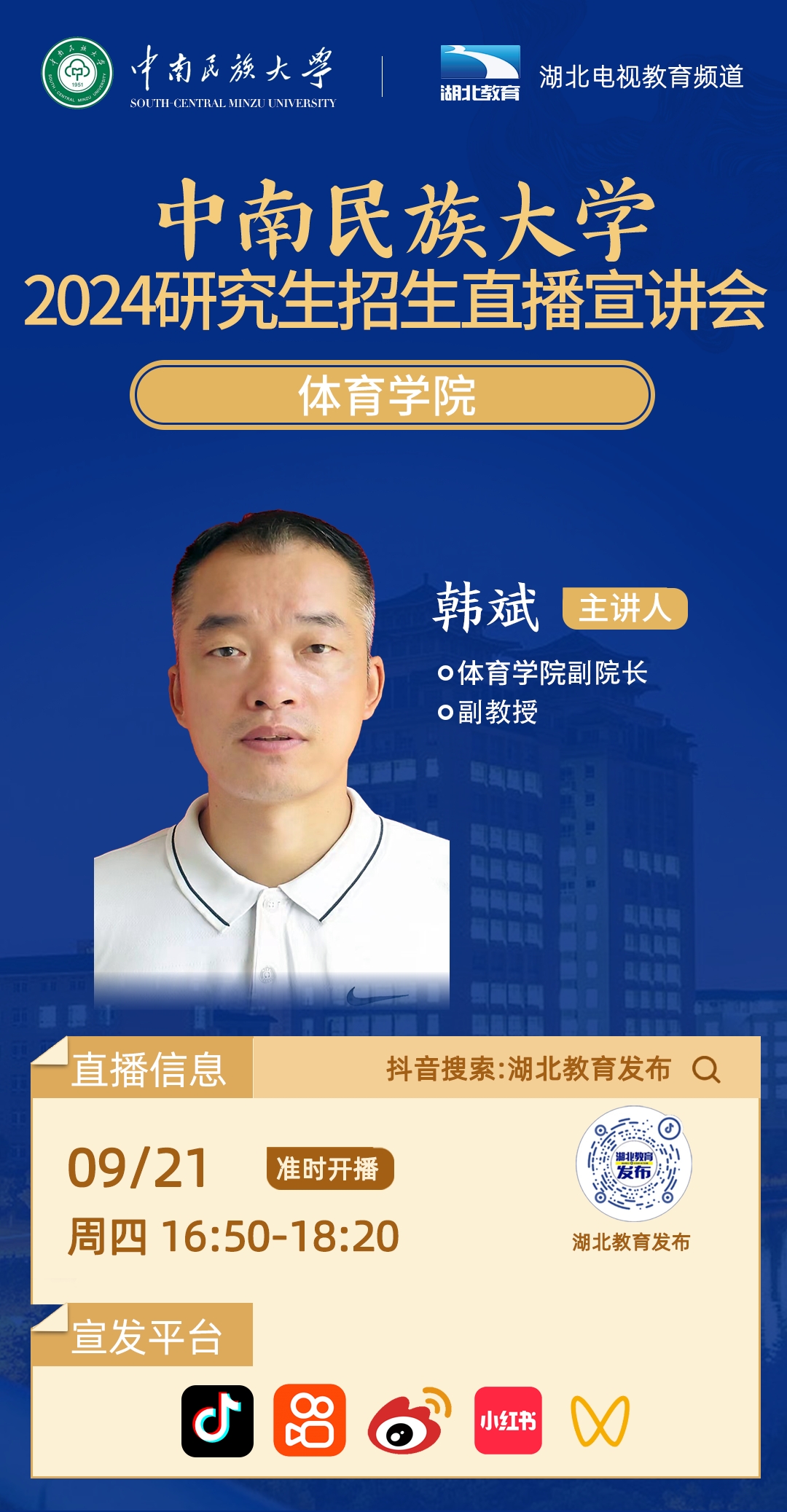 威尼斯8866992024年研究生招生线上系列宣讲会之十一------体育学院专场(9月21日 16:50)