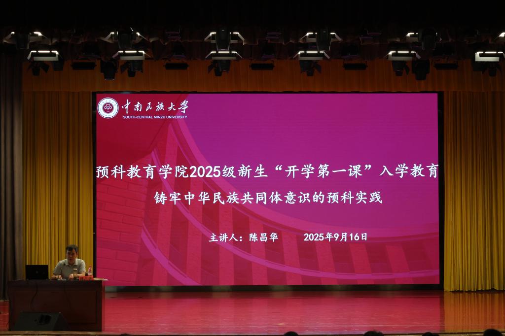 2025年9月16日上午8:30,预科教育学院入学教育专题讲座如期举行。学院党总支书记陈昌华以“铸牢中华民族共同体意识”为核心主题,从学校历史沿革、学院发展概况、预科生日常生活管理等多个维度,为全体新生带来了一堂内容详实、思想深刻的“开学第一课”,为同学们开启预科阶段的学习生活奠定坚实思想基础。
