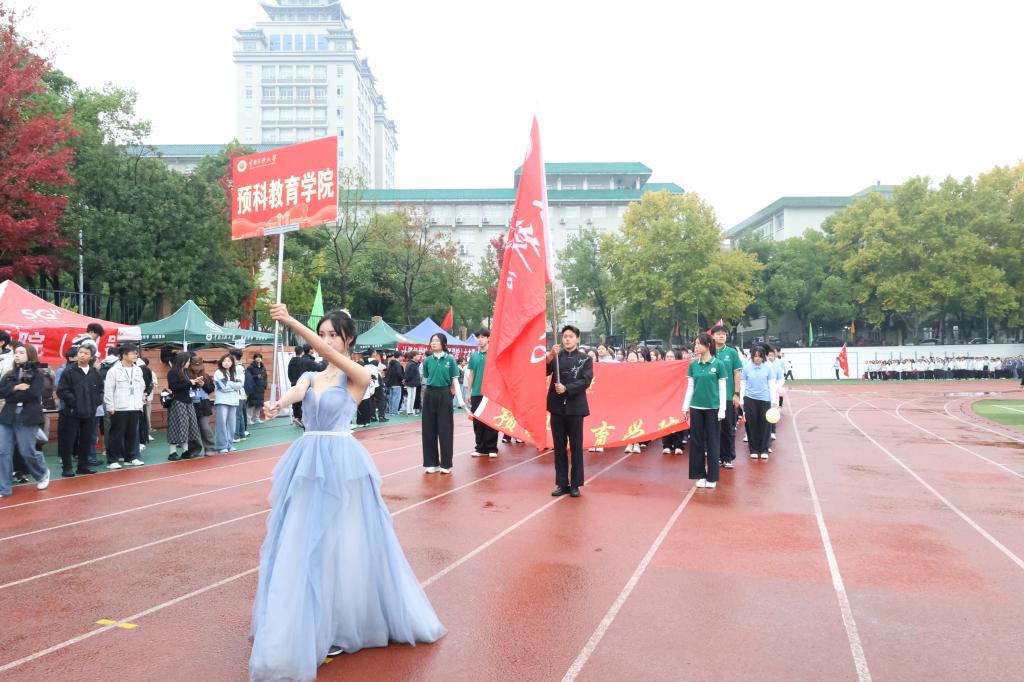 预科教育学院全体师生以饱满热情奔赴这场体育盛会,在校运会开幕式上,预科教育学院学生方阵队精神抖擞,高喊旌旗所向,锐不可当;预科聚力,筑梦飞扬的口号,高举红旗和彩球,向现场的所有人展现预科的激情和活力。预科学子诠释了预科教育学院协同并进,共赴奋斗的精神,在他们脚步声中预科教育学院即将迎来校运喜讯。