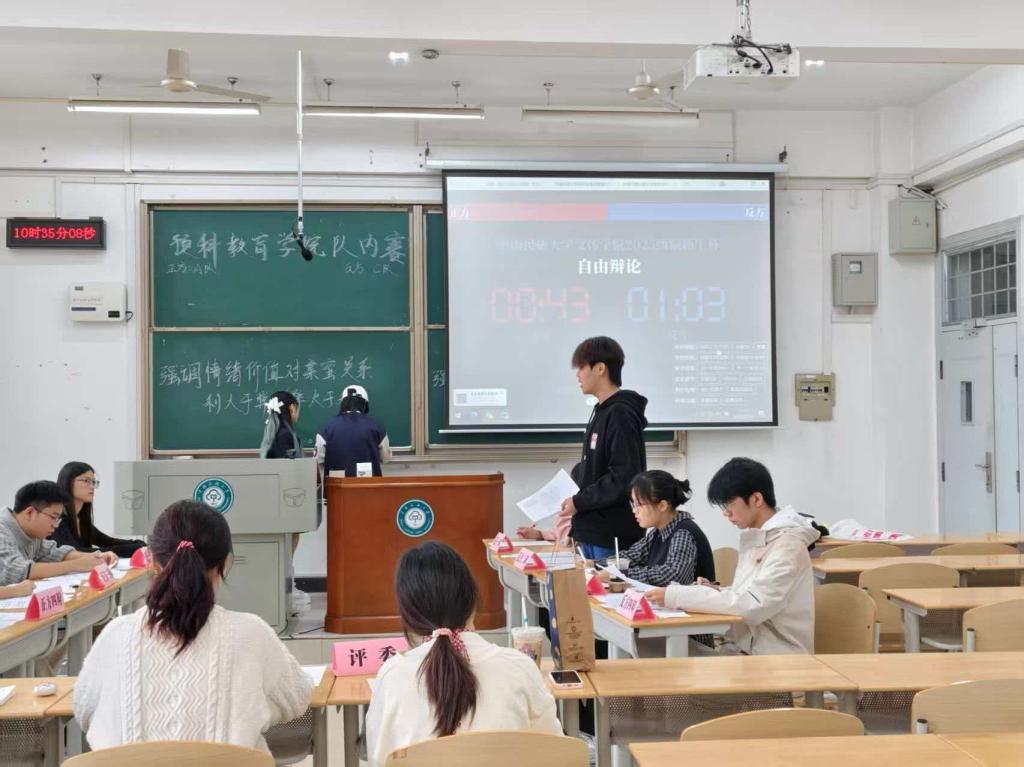 除了体育赛场,“新生杯”辩论赛同样精彩。正反双方选手围绕辩题旁征博引、据理力争,开篇立论逻辑清晰,攻辩环节针锋相对,总结陈词掷地有声。他们用严谨的思维、流畅的表达拆解观点,在思想的碰撞中传递真知,展现了新生学子缜密的逻辑素养与良好的语言表达能力,为系列活动增添了别样风采。