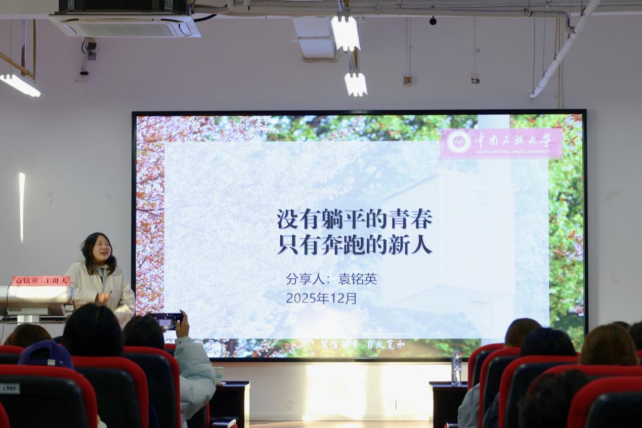 (图为袁铭英学姐进行分享)