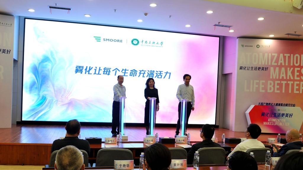 揭牌仪式后,联合研究中心负责人刘吉开介绍中心发展规划。他指出雾化技术在我国始用时间悠久,适用场景广泛,使用规模庞大,市场前景光明。近期思摩尔国际将以新化妆品原料研究发现为主方向,研究兼具中医药学特色和现代科技的化妆品,未来校企双方将开启天然产物雾化美容的新蓝图。