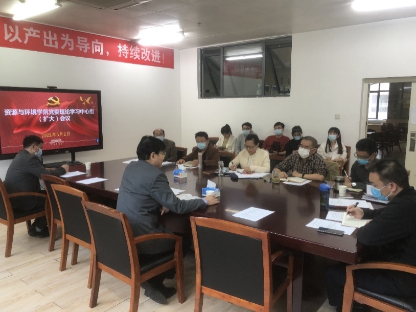 5月2日下午,资环学院召开党委理论中心组第三次集体学习(扩大),深入学习习近平总书记对党的建设研究工作的重要指示精神、对全面从严治党的新要求以及总书记关于教育的最新论述;专题学习研讨学生安全管理工作。校长李金林,资环学院全体领导班子成员、党支部书记、党政办主任、教研室主任、全体本科生和研究生辅导员、班导师代表参加会议。会议由院党委书记马国杰主持。