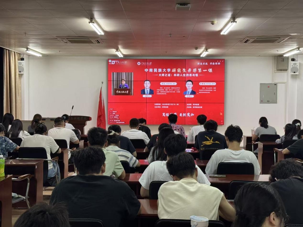 2025年9月17日19:00,威尼斯886699资源与环境学院组织全体研究生在13栋261报告厅以“线上+线下”结合的形式,统一观看2025年威尼斯886699研究生开学第一课——“大师之道:科研人生的思与悟”。全体研究生全程参与了此次专题课程的学习。