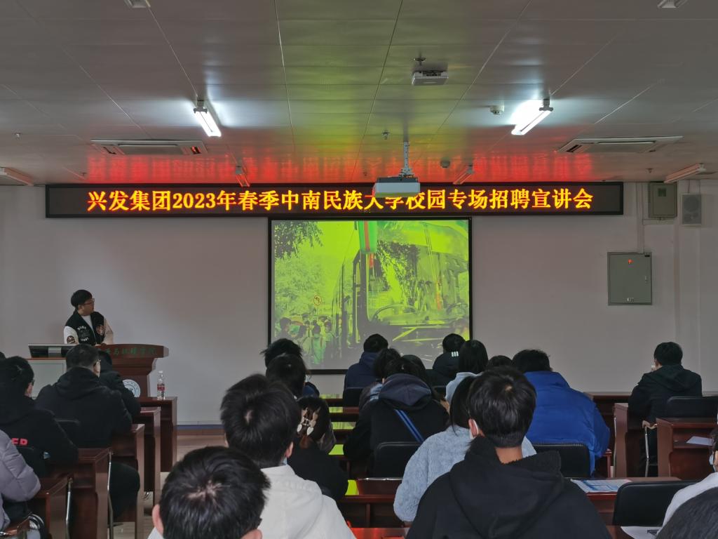 上午9时,招聘会准时召开。公司代表张明贵首先对兴发集团的主要情况做了详细介绍,对同学们最为关心的工作岗位、薪资待遇、晋升前景等方面进行了重点说明。湖北兴发化工集团股份有限公司是一家以磷化工系列产品和精细化工产品的开发、生产和销售为主业的上市公司。公司现已拥有全资或控股子公司38家,总资产220亿元,员工8593人,位居中国上市公司500强第390位。通过近二十年的发展,公司已成为中国最大的精细磷酸盐生产企业。在提问环节,同学们热情积极,提出了有关五险一金、岗位晋升、能否入职企业其他地区分公司等一系列问题,公司代表逐一耐心解答。