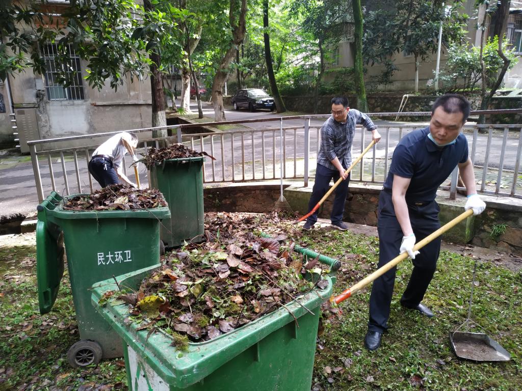 下午2点30,学院下沉党员在民大社区服务中心门口集合,社区工作人员对大家的到来表示欢迎和感谢。5月12日又恰逢第13个全国防灾减灾日,我院党员下沉社区开展志愿服务又增添了一层特殊的意义。领取工具后,大家来到15栋教工宿舍楼下,进行树叶清扫和下水沟清理工作。下水沟因长时间未清理,里面树叶泥土及生活垃圾堆积,已经影响到雨水的排放,很容易造成积水,影响居民出行,在目前武汉暴雨多发时期存在较大的安全隐患。在分工后,老师们二话不说,一起撸起袖子加油干,忙的不亦乐乎。