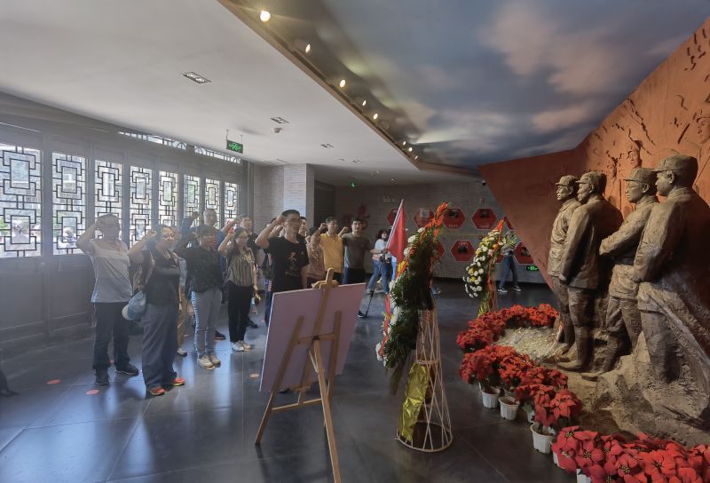 (上图为我院教职工党员重温新四军峥嵘历史)