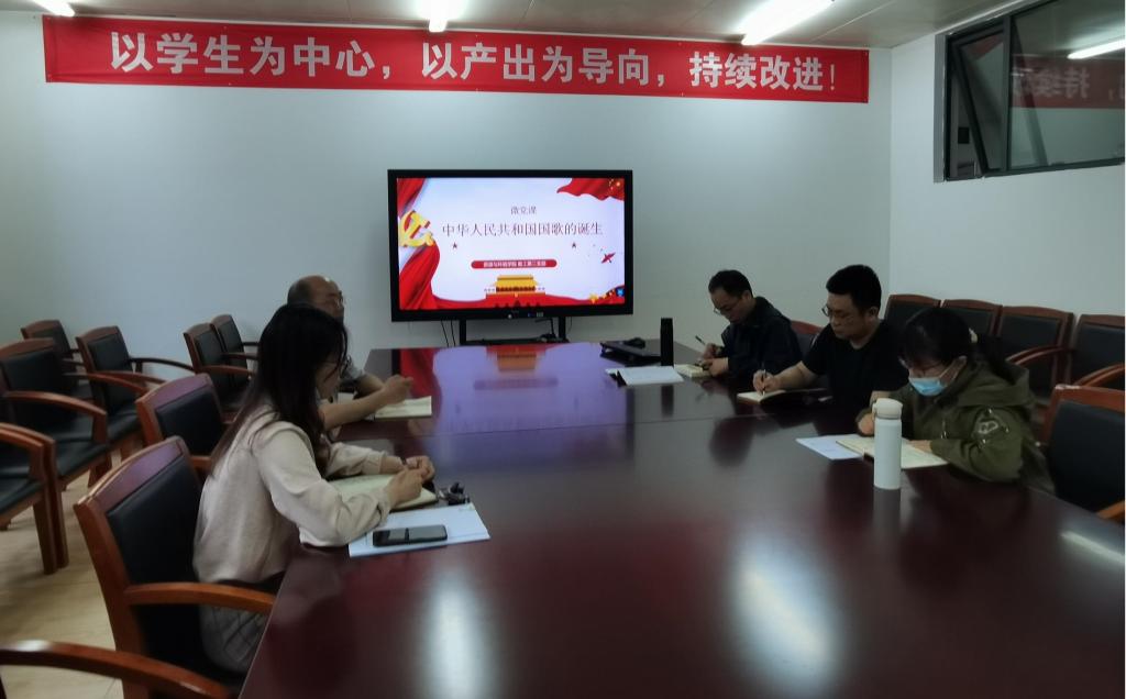 活动由支部书记丁耀彬老师主持,首先他作了主题为“中华人民共和国国歌的诞生”的微党课,带领大家再次学习国歌诞生的过程,感受那气势如虹而悲壮的旋律和激励人奋发向上的歌词,了解了中华儿女为国存亡不懈抗争的伟大历史。基于对世界大势的敏锐洞察和深刻分析,以习近平同志为核心的党中央作出一个重大判断:世界处于百年未有之大变局。当今世界正经历新一轮大发展大变革大调整,大国战略博弈全面加剧,国际体系和国际秩序深度调整。我国正处于实现“两个一百年”奋斗目标的关键节点。学习和感悟国歌有助于清晰地认识国际形势,有助于继承和发挥中华儿女为国存亡不懈抗争的伟大精神,助力“两个一百年”奋斗目标的实现。