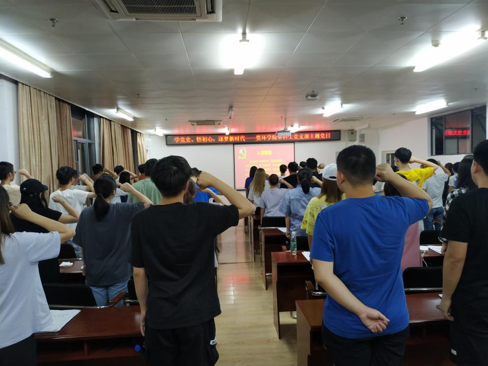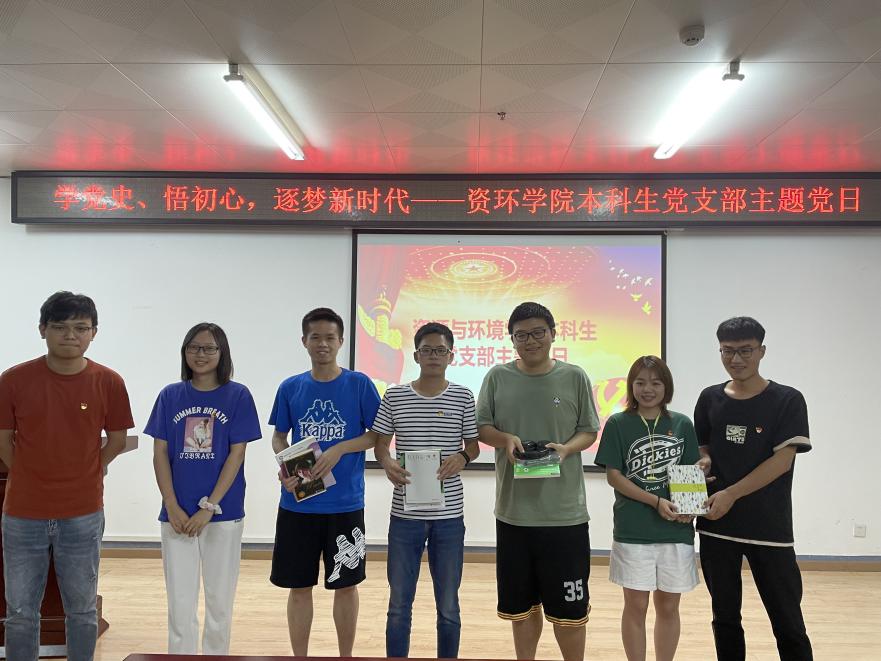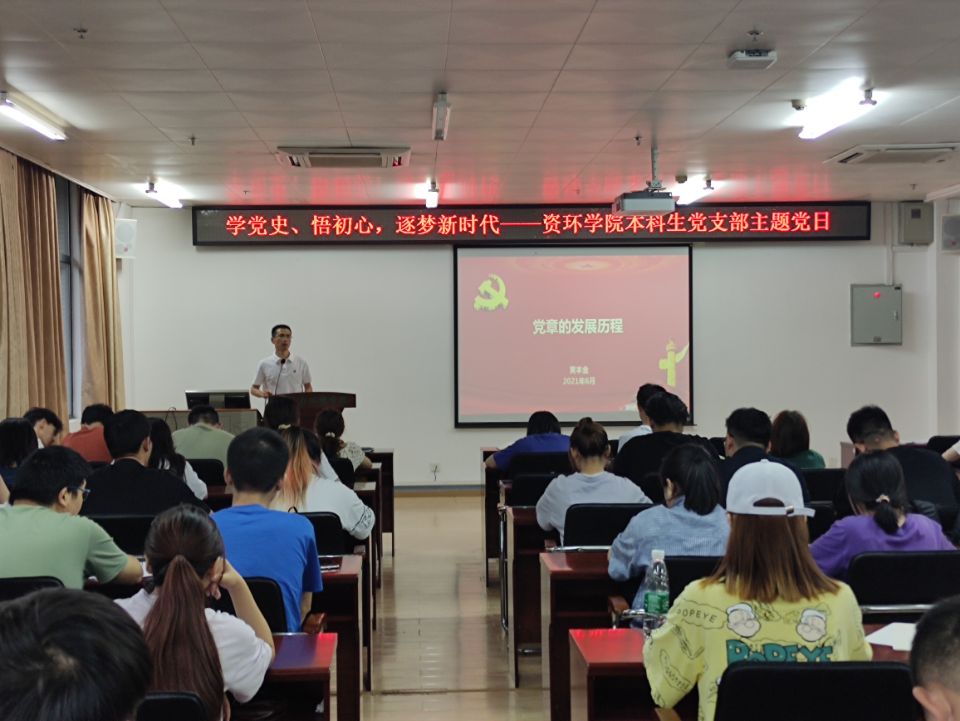 在建党100周年到来之际,在毕业党员离校逐梦新时代之际,为进一步推进党史学习教育走深走实,引导青年党员从党史学习中激发信仰、获得启发、汲取力量,6月17晚,资源与环境学院在13栋261报告厅举行“学党史、悟初心,逐梦新时代”的主题党日活动,学院全体本科生党员参加,活动由本科生第一党支部书记黄晴主持。