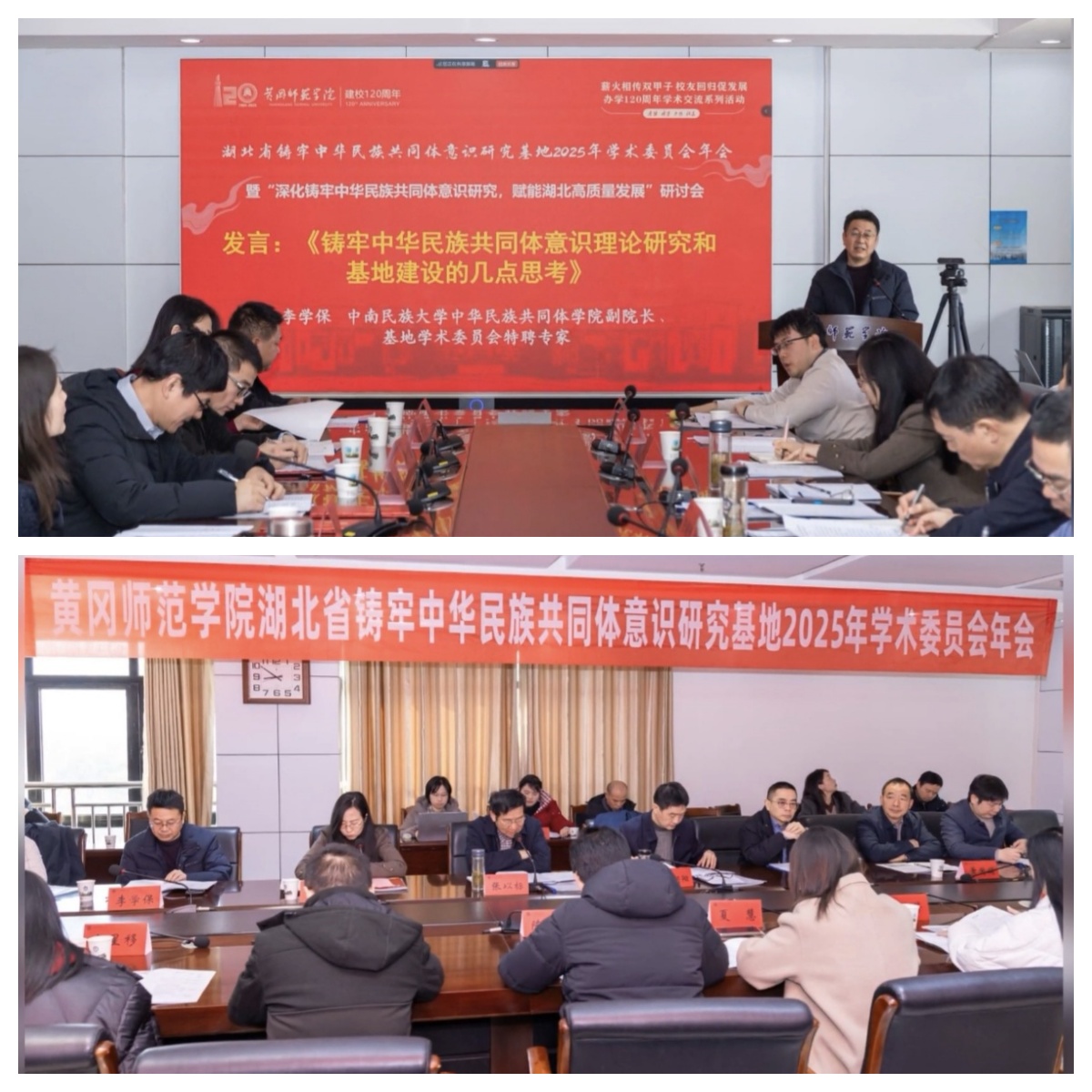2025年12月27日,黄冈师范学院湖北省铸牢中华民族共同体意识研究基地召开学术委员会年会,我院李学保、崔榕教授受邀参加活动。本次活动邀请了中国人民大学、中央民族大学、威尼斯886699、大连民族大学、武汉纺织大学、黄冈市委统战部等国内专家教授共40多人参加会议。李学保、崔榕教授就铸牢中华民族共同体意识研究动向和基地建设发表了主旨演讲,受到会议主办方和与会专家的好评。