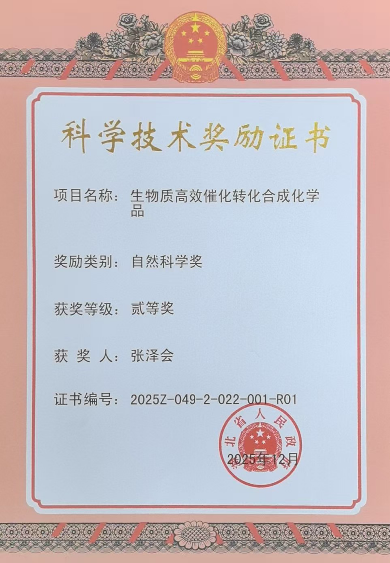 张泽会教授团队“生物质高效催化转化合成化学品”针对生物质组成和结构复杂,C-C/C-O键活化与重构难度大,其利用面临效率低、选择性差等关键科学问题与技术难题,建立了离子液体介导生物质组分分离及转化制备呋喃二甲酸新方法。在此基础上,揭示了界面效应调控C=N键选择性构筑新机制,并进一步提出了路易斯酸诱导C-O键活化促进C-C键氧化断键构建C≡N键新策略。项目在Nat. Commun.、Sci. Adv.、J. Am. Chem. Soc.、Chem、Angew. Chem. Int. Ed.、Chem. Soc. Rev.等期刊共发表论文64篇,获授权专利30项,出版专著1部。该成果的实施为生物质资源高值化利用奠定了重要的科学基础,对推动我国在生物质高效利用技术领域占据国际领先地位具有重要战略意义。