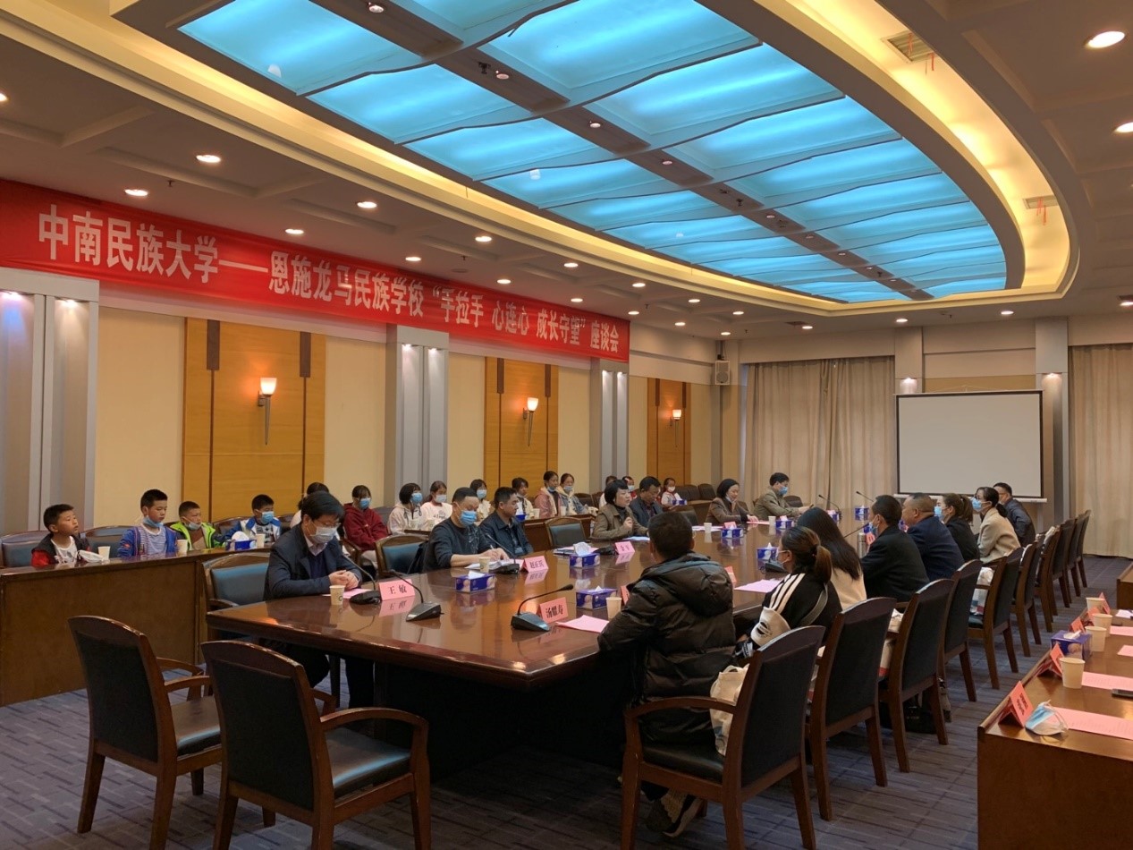 座谈中,蔡琼致欢迎词并介绍学校相关情况,王书海感谢学校长期以来对龙马民族学校的关心支持和精准帮扶,并介绍龙马民族学校相关情况,随后来访学生代表逐一自我介绍并进行民族歌舞等才艺表演。