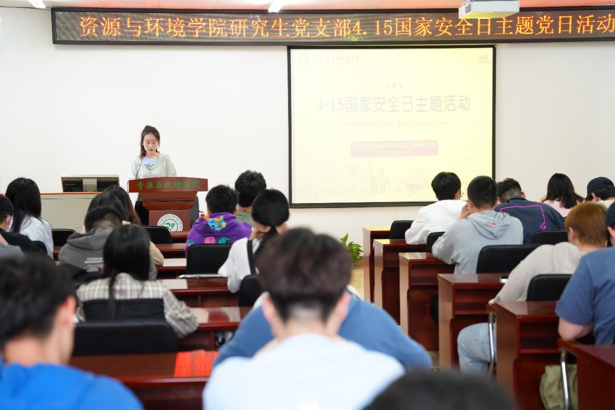 为切实增强学生安全意识,贯彻落实总体国家安全观,夯实以新安全格局保障新发展格局的基础,增强支部党员国家安全意识。4月13日下午,资源与环境学院研究生党支部在13号楼261报告厅开展国家安全教育主题党日活动,会议由研究生辅导员刘瑾老师主持。