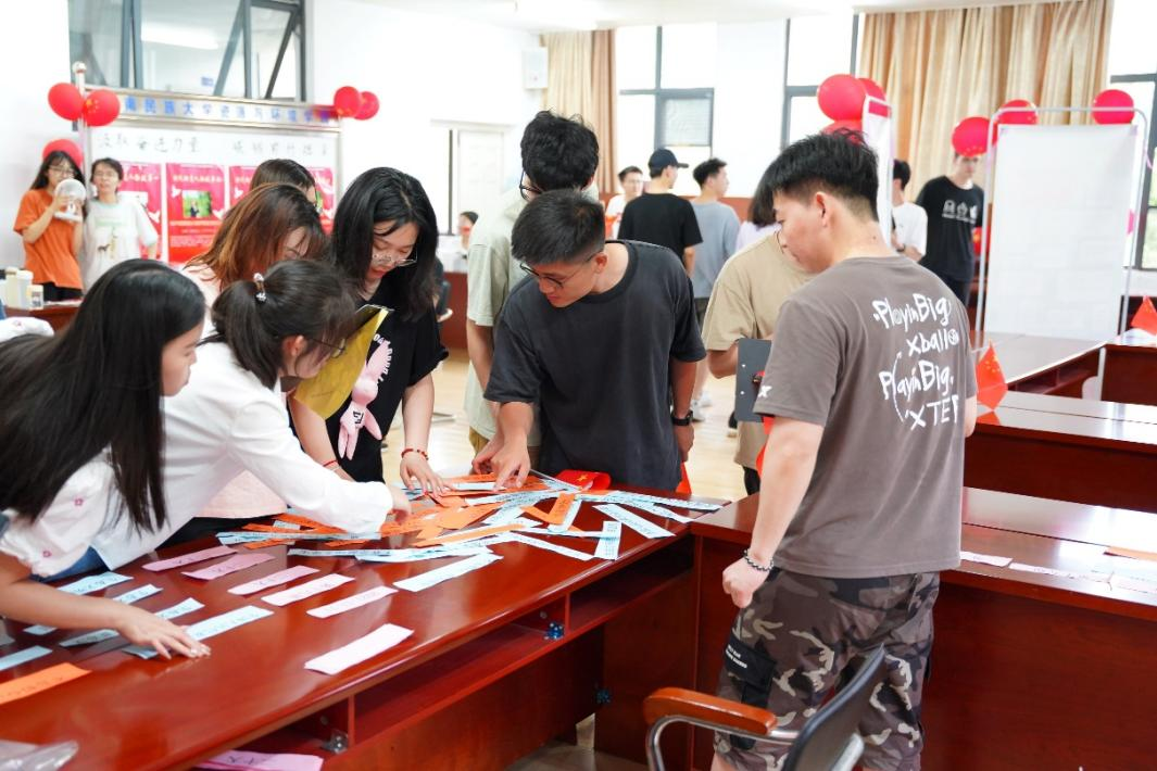 接下来的实践打卡活动将学习氛围带到了高潮,党员、团员青年们精神饱满、积极参与。实践活动采取队伍打卡制,由同学们自主报名形成了12支队伍,每队2~3名成员,共设置了拼接“习近平新时代中国特色社会主义思想”发展史、领悟新时代榜样精神、开展“习近平新时代中国特色社会主义思想”知识竞答和书写青年寄语4个打卡点,完成相应板块的学习可获得一枚贴纸。选手们积极参加各项活动,展现了青年学子过硬的理论功底和良好的精神风貌。大家纷纷表示,这是一次深刻的学习活动,作为新时代青年,要奋发图强,为推进强国建设、民族复兴作出我们这一代人的应有贡献!