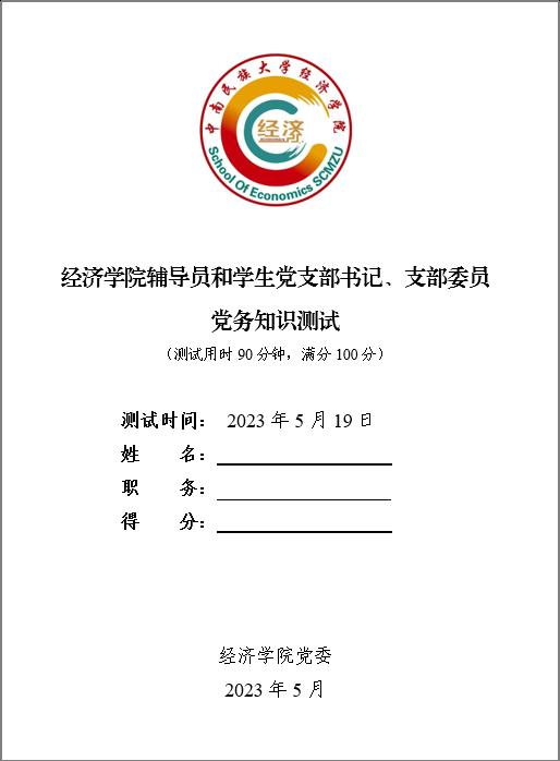 为深入开展学习贯彻习近平新时代中国特色社会主义思想主题教育,帮助辅导员和学生党支部书记、支部委员提高做好党建工作能力,增强党务知识水平,规范发展党员流程,5月19日,经济学院党委组织全体辅导员、学生党支部书记、支部委员开展党务知识测试,测试以闭卷形式进行。